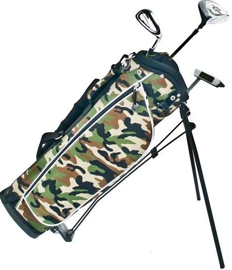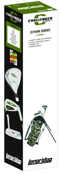 An ideal way of getting young children in to the game of golf. The junior Challenger from Longridge is ideal for children aged 3+. Includes a driver, a 7 iron and a putter. The bag is designed using a camouflage theme and includes several storage pockets. It’s fitted with a dual strap to spread weight evenly over both shoulders and increase comfort. A light weight club head and shaft aid the typical swing speed of a junior golfer.
